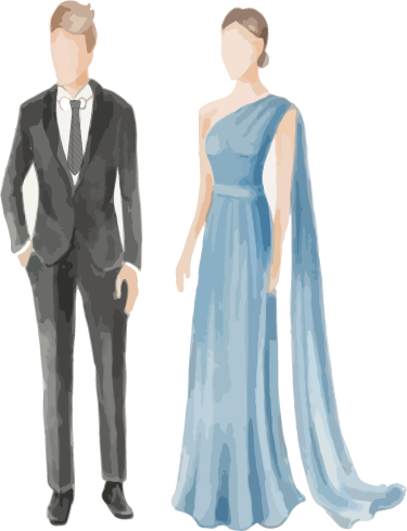 Ladies: Long solid-colored dress (white and green are reserved). Gentlemen: Suit and tie.